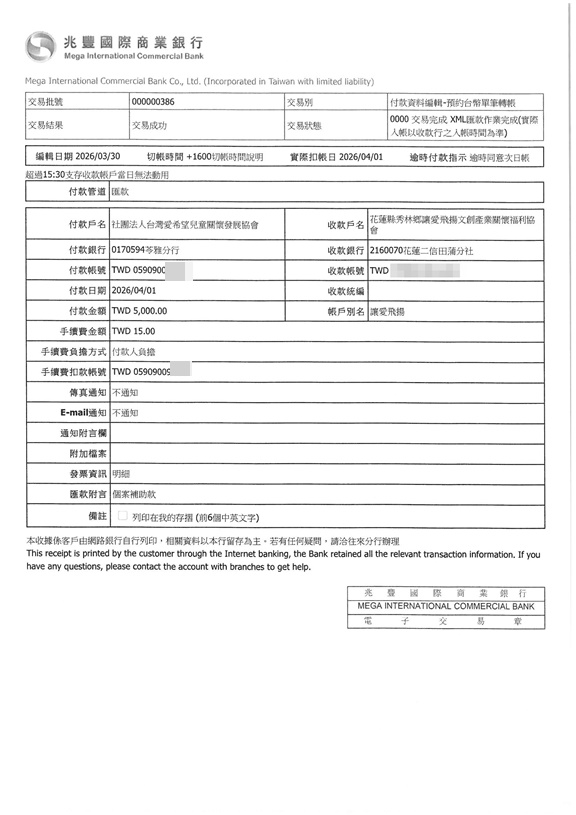 核定補助項目: 急難救助金新台幣伍仟整(補助部份醫療費用),並已於115年4月1日完成撥款。