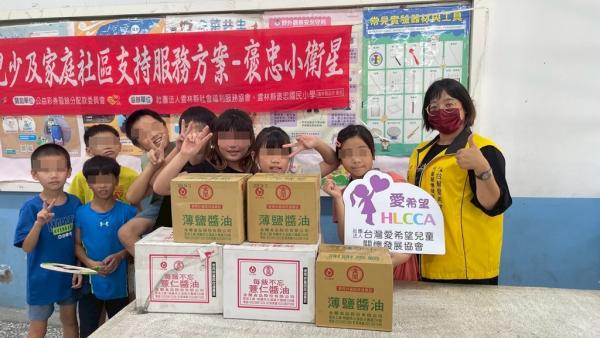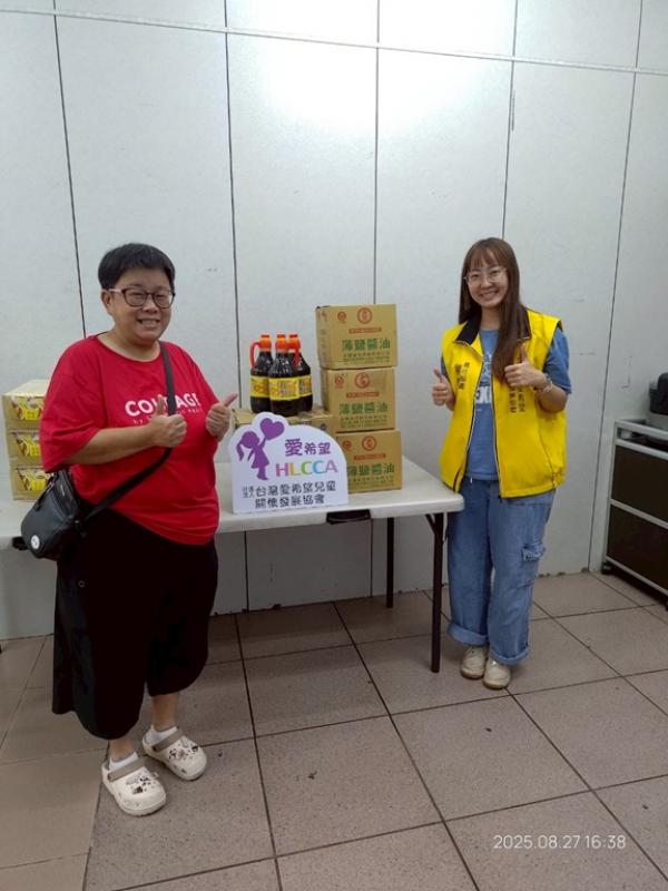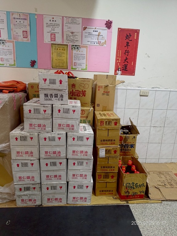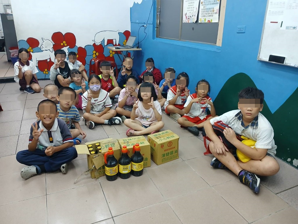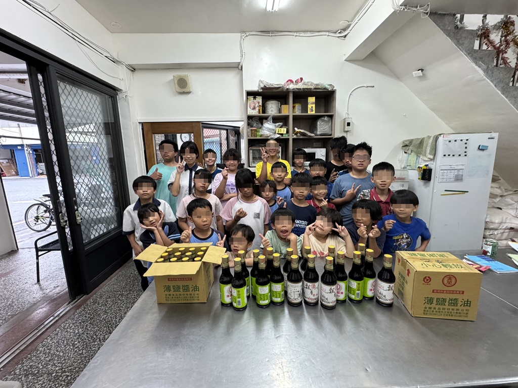 主動捐贈各款醬油一批/共計588瓶,讓課輔班及孩童家庭使用優質醬油喔!!