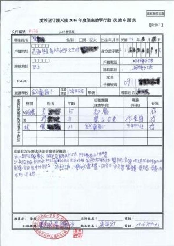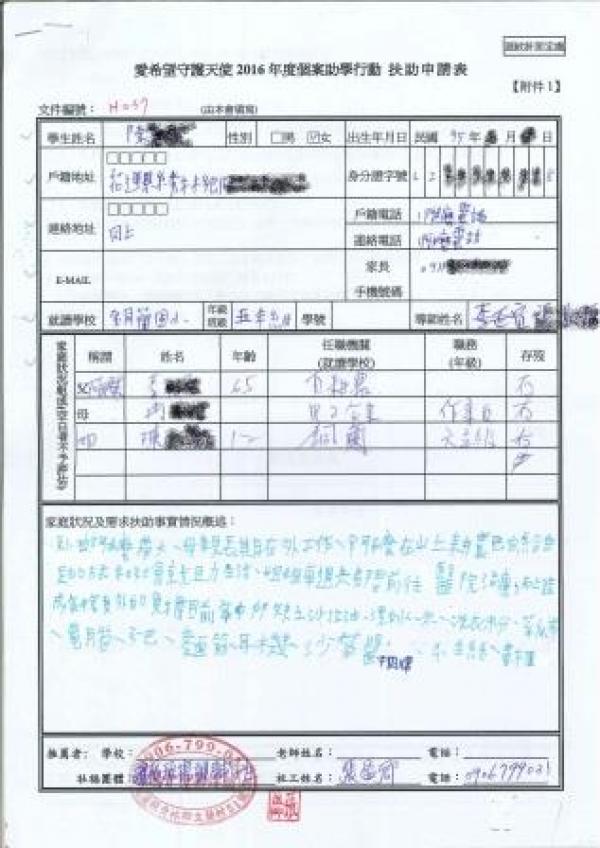 但也因為如此,就算家裡的狀況很差,也不太想讓案母擔心,自己一個人獨撐著。