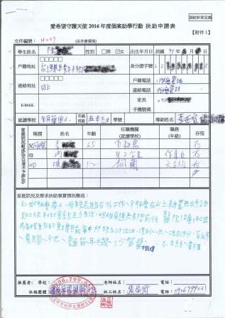 這次個案申請是由案主親筆寫的,案主姊姊說:家中目前欠缺米、沙拉油、鹽巴、麵筋、沙茶醬與漂白水、洗衣粉、菜瓜布、衛生紙。