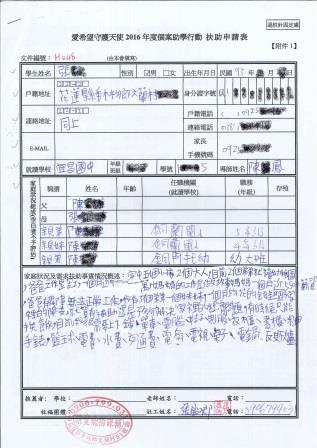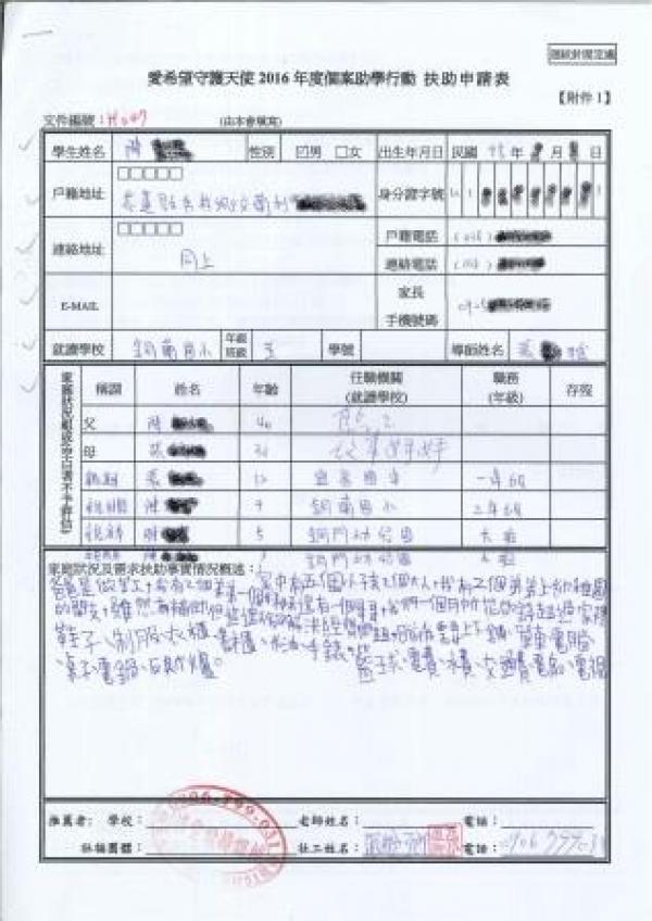 個案兄妹則需要:制服、鞋子、衣櫃、書櫃、單車、手錶、電腦、交通費與籃球。