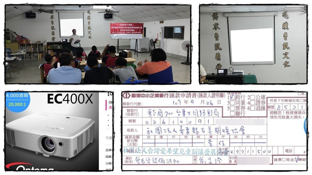 補助其投影機設備採購經費壹萬伍仟元整,期盼以提供更優質的學習環境為要,使課輔班的弱勢孩童能獲得更好的教育與照顧。