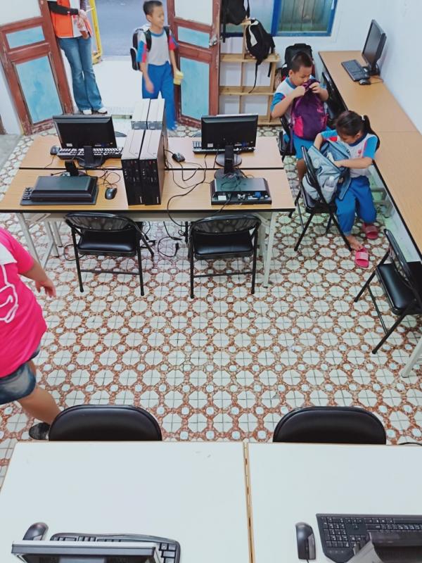 但因為電腦教室沒有足夠的桌椅,依然沒有辦法讓孩子們順利上線多元學習~。
