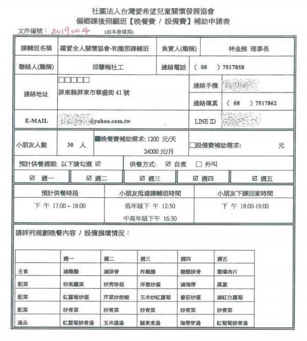 ,遂向本會提出晚餐費補助申請,