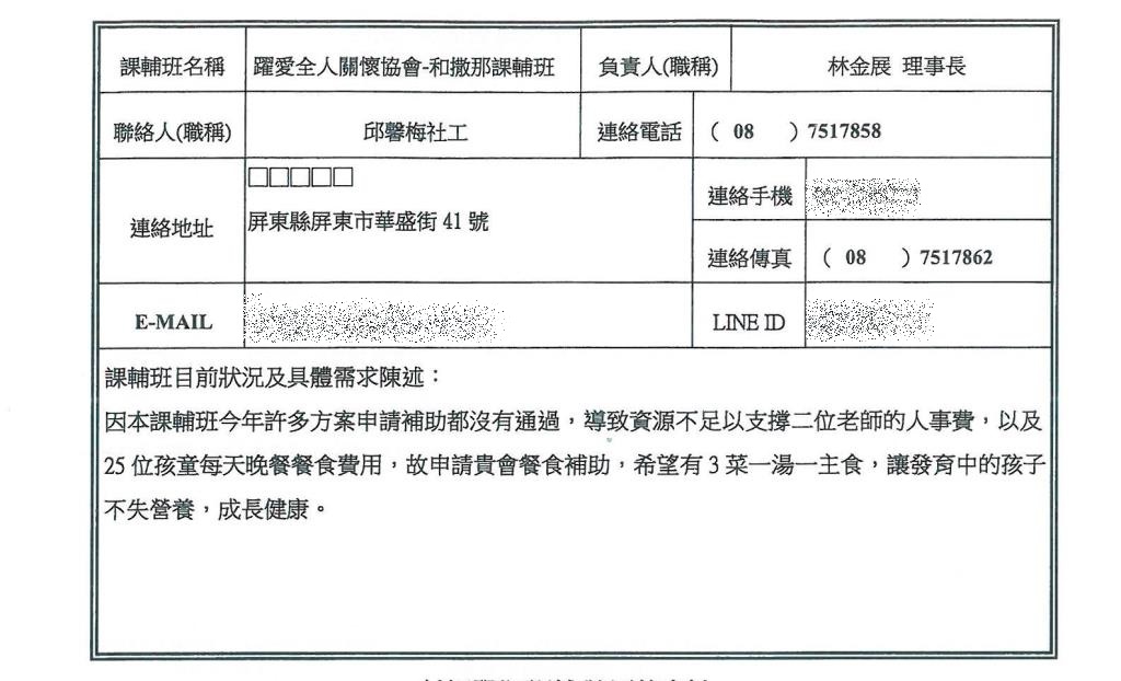 【偏鄉弱勢兒童課輔班營養餐費扶助計畫】屏東躍愛全人關懷協會