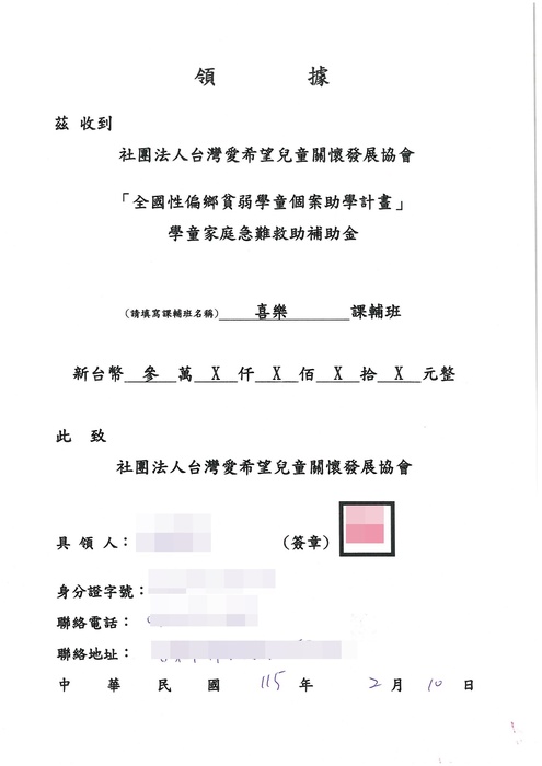 台東喜樂課輔班轉介個案弱勢學童 - 家庭急難救助補助款發放