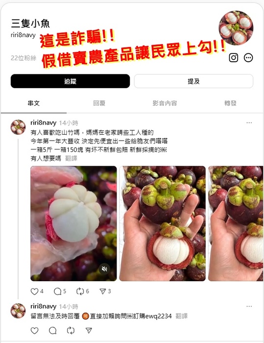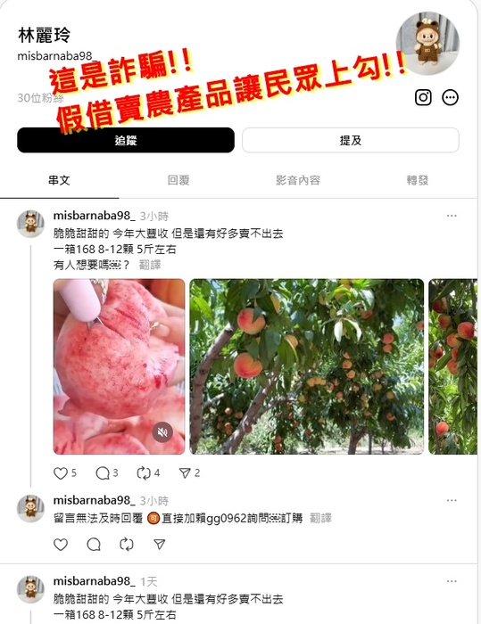 ‼ 請大家不要在Threads上買水果,尤其是低於行情還要求匯到公益團體帳號的 !! 這是詐騙!!